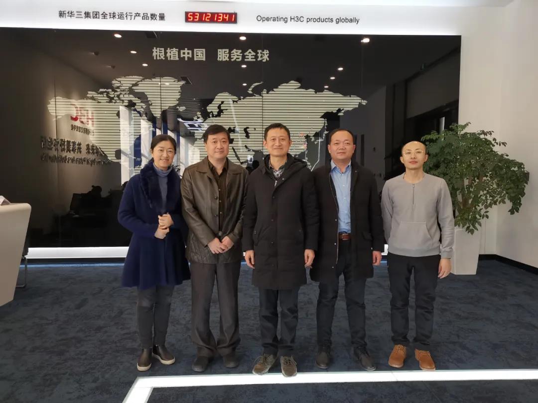 2020年12月28日,山東科大中天董事長湯建泉、總經(jīng)理歐元慶、副總?cè)~蔚、總工程師張明明一行來到新華三集團杭州總部參觀考察。新華三集團浙江代表處--教育系統(tǒng)部部長呂明進行了接待。